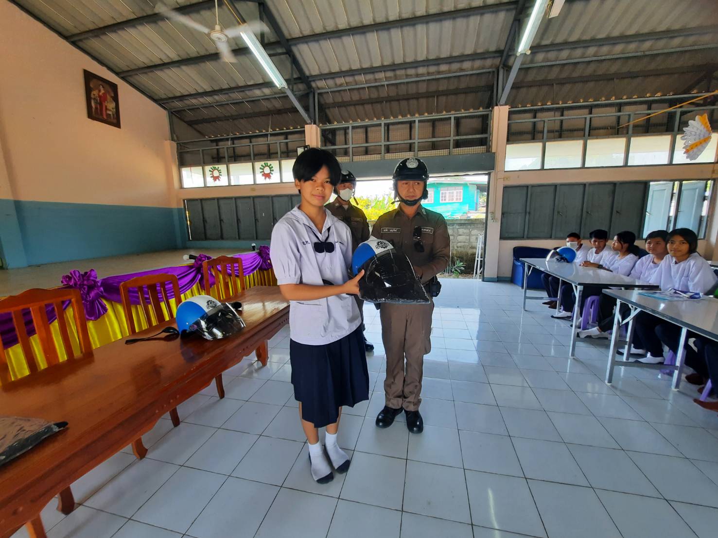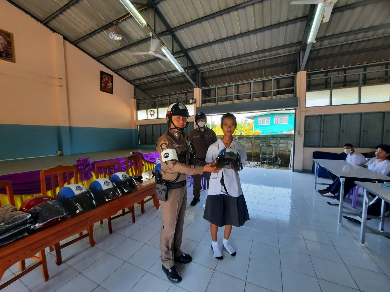 วันที่ 21 มกราคม 2568 เวลา 09.30 น. พ.ต.ท.สมนึก คิดถูก รอง ผกก.ป.ฯ พร้อมด้วย พ.ต.ท.ชยุต คุ้มครอง สวป.ฯ และสายตรวจจราจร ได้นำหมวกนิรภัยไปมอบให้กับเด็กนักเรียนโรงเรียนบ้านยางโทน ต.ยางโทน เพื่อเป็นการปลูกฝังจิตสำนึกให้กับเด็กนักเรียน ได้รู้จักการขับขี่รถอย่างปลอดภัย มีระเบียบวินัยด้านการจราจร และปฏิบัติให้ถูกต้องตามกฎจราจร ณ ห้องประชุมของโรงเรียนบ้านยางโทน
