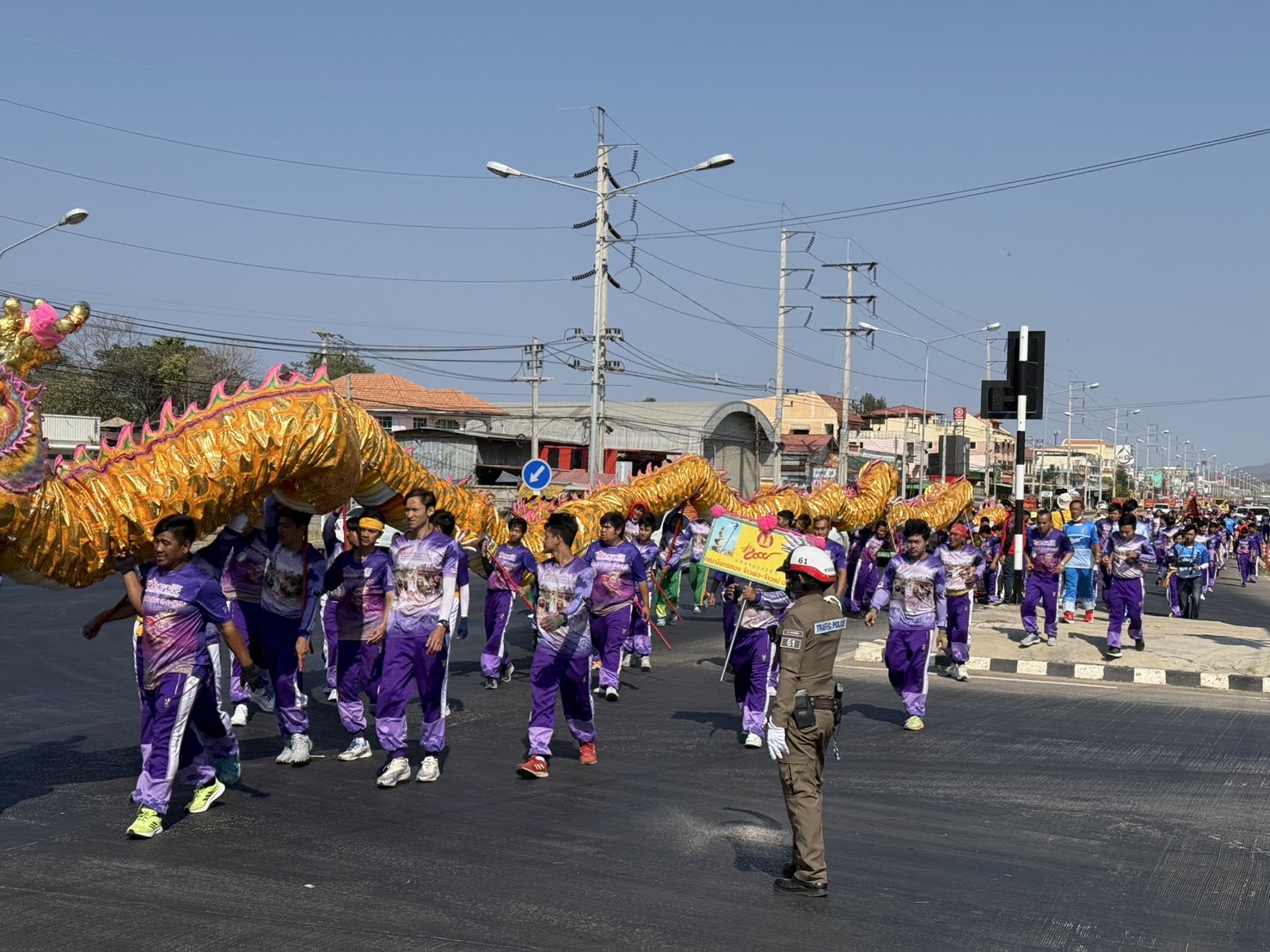 วันที่ 9 กุมภาพันธ์ 2568 เวลา 07.30 น. ร.ต.ท.พรชัย บุญรัตน์ รอง สว.(จร) สภ.หนองม่วง พร้อมด้วย สายตรวจจราจร ได้ดูแลอำนวยการจราจรให้กับประชาชนที่ได้มาเข้าร่วมเดินขบวนแห่มังกรงานตรุษจีน บนถนนพหลโยธิน ในเขตเทศบาลตำบลหนองม่วง เพื่อให้ประชาชนที่เข้าร่วมเดินขบวนแห่มังกรงานตรุษจีน ได้รับความปลอดภัยบนท้องถนน และป้องกันการเกิดอุบัติเหตุทางถนน
