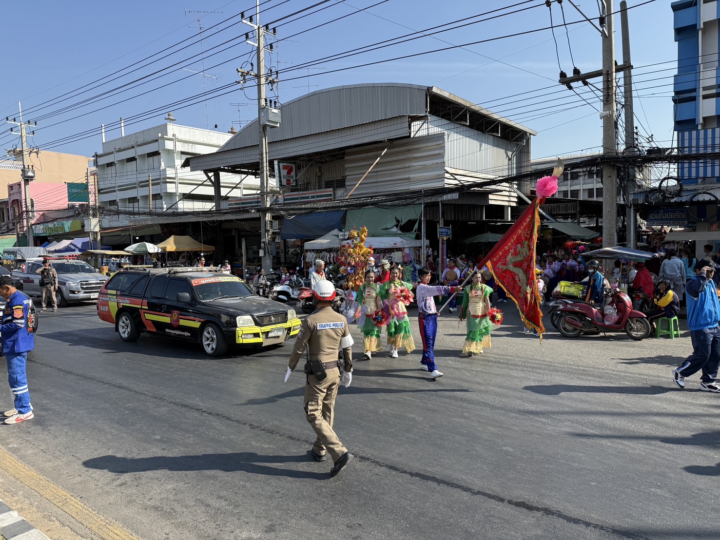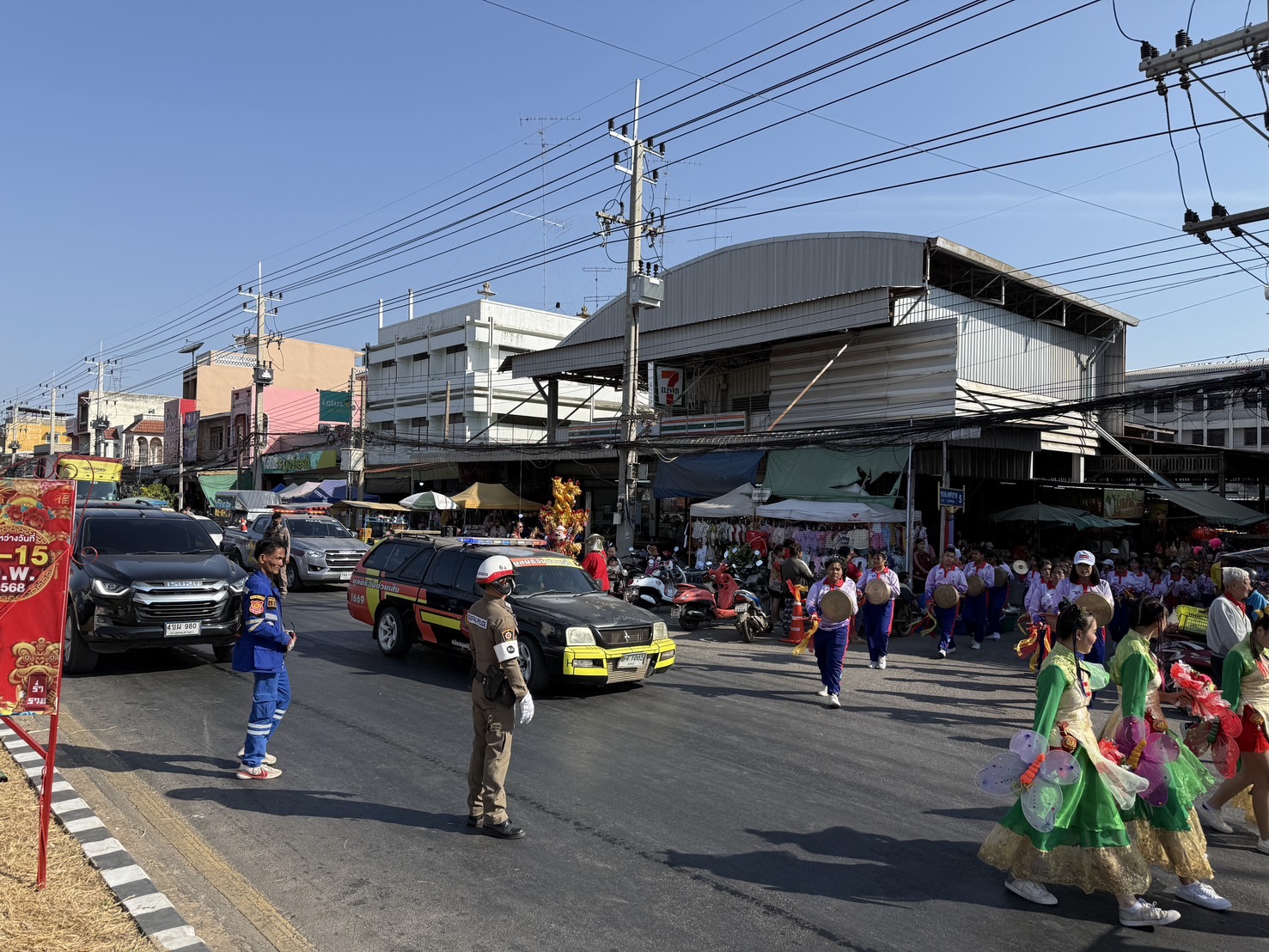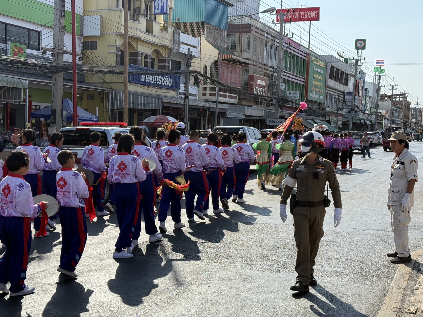 วันที่ 9 กุมภาพันธ์ 2568 เวลา 07.30 น. ร.ต.ท.พรชัย บุญรัตน์ รอง สว.(จร) สภ.หนองม่วง พร้อมด้วย สายตรวจจราจร ได้ดูแลอำนวยการจราจรให้กับประชาชนที่ได้มาเข้าร่วมเดินขบวนแห่มังกรงานตรุษจีน บนถนนพหลโยธิน ในเขตเทศบาลตำบลหนองม่วง เพื่อให้ประชาชนที่เข้าร่วมเดินขบวนแห่มังกรงานตรุษจีน ได้รับความปลอดภัยบนท้องถนน และป้องกันการเกิดอุบัติเหตุทางถนน