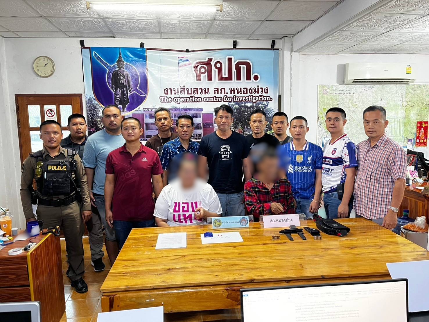 ร่วมกันจับกุมผู้ต้องหา ชาย 1 คน พร้อมของกลาง 1.อาวุธปืนสั้นกึ่งอัตโนมัติ สีดำ ขนาด .380 ไม่ทราบหมายเลขทะเบียน จำนวน 1 กระบอก 2.ซองบรรจุกระสุน จำนวน 2 อัน 3.เครื่องกระสุนปืนขนาด .380 จำนวน 12 นัด 4.ซองพกในหนัง สีดำ จำนวน 1 อัน 5.กระเป๋าหนัง สีดำ จำนวน 1 ใบ